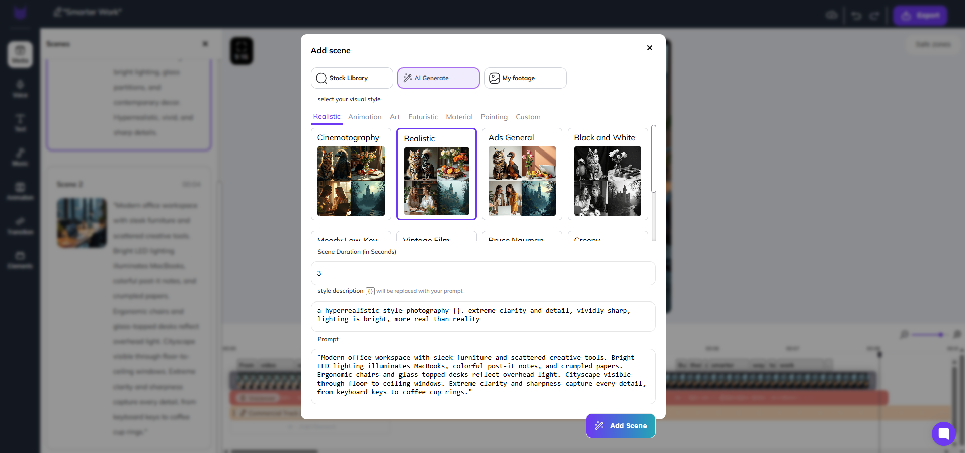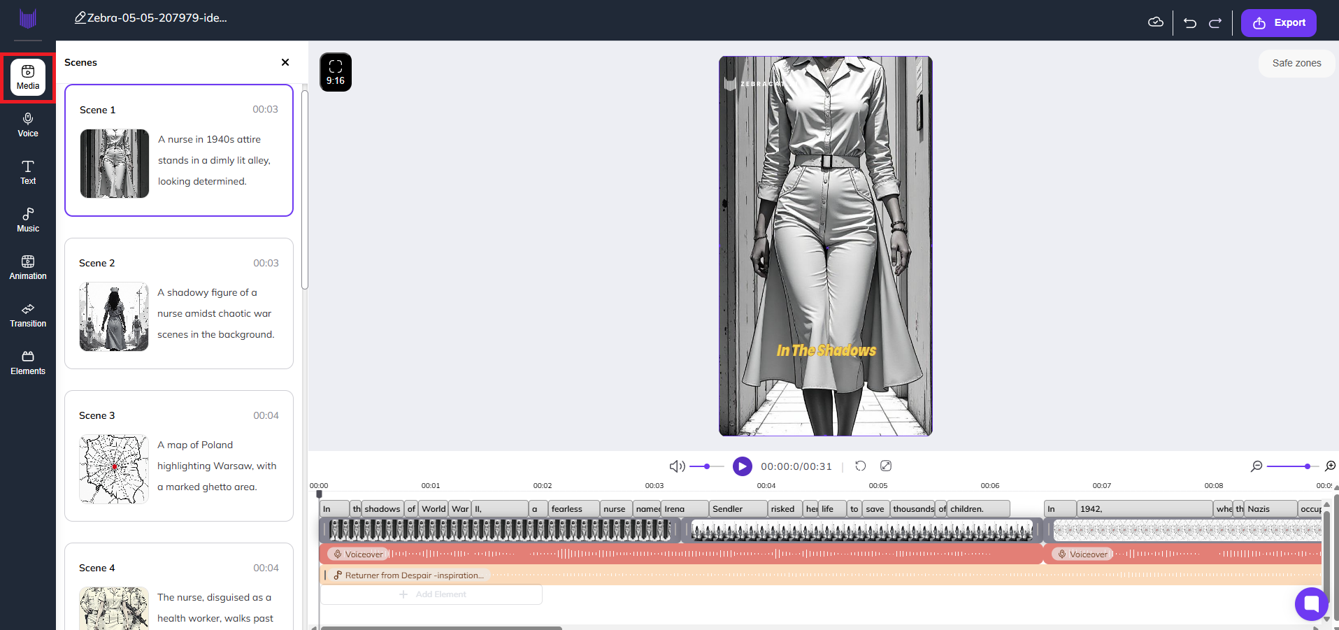 In the Zebracat editor, you can mix and match different types of footage by clicking on โMediaโ then click a scene.